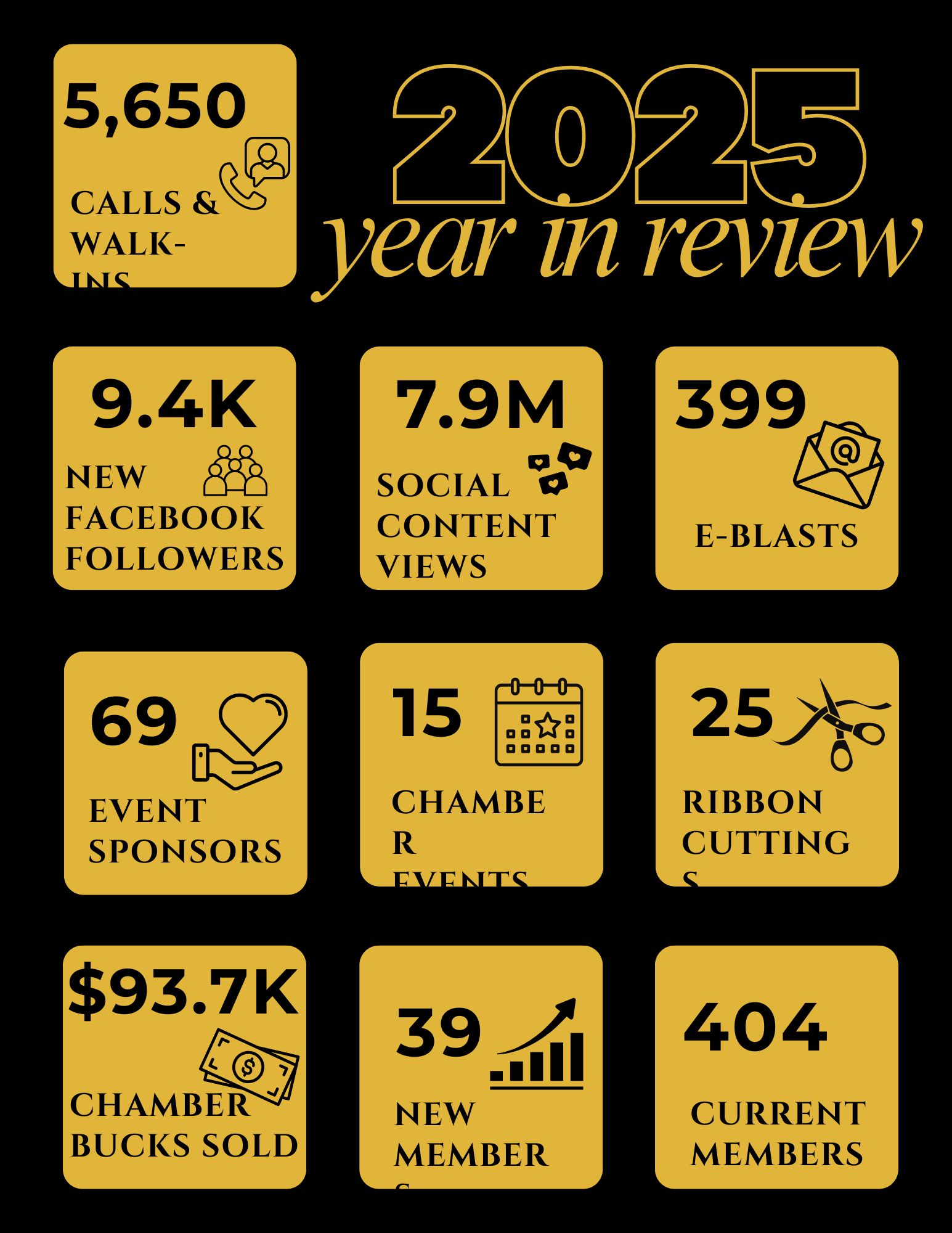 - Chamber Dollar Gift Certificates (over $125,000 distributed annually for consumers to use in membership businesses & keep spending local)